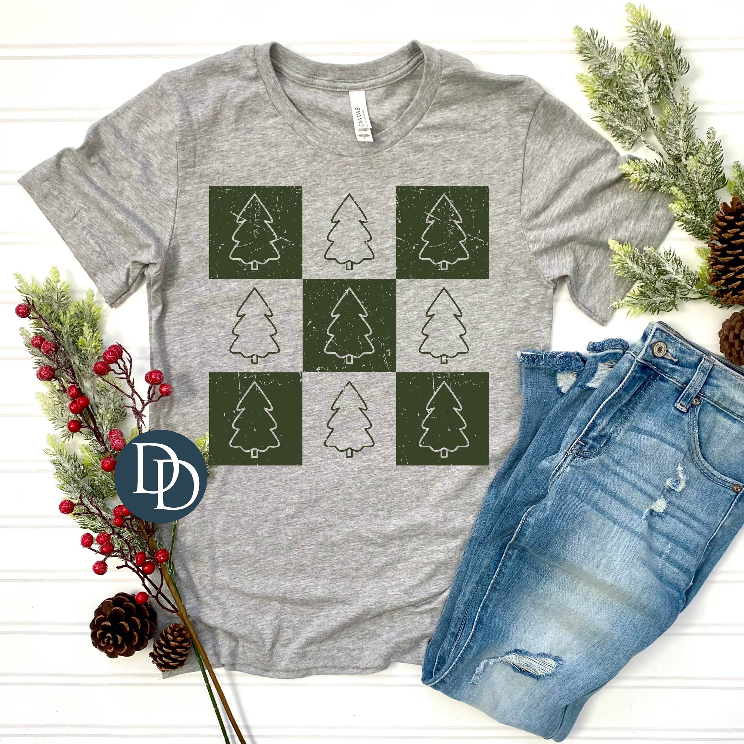 Checkered Christmas Trees (Hunter Green Ink) *Screen Print Transfer*