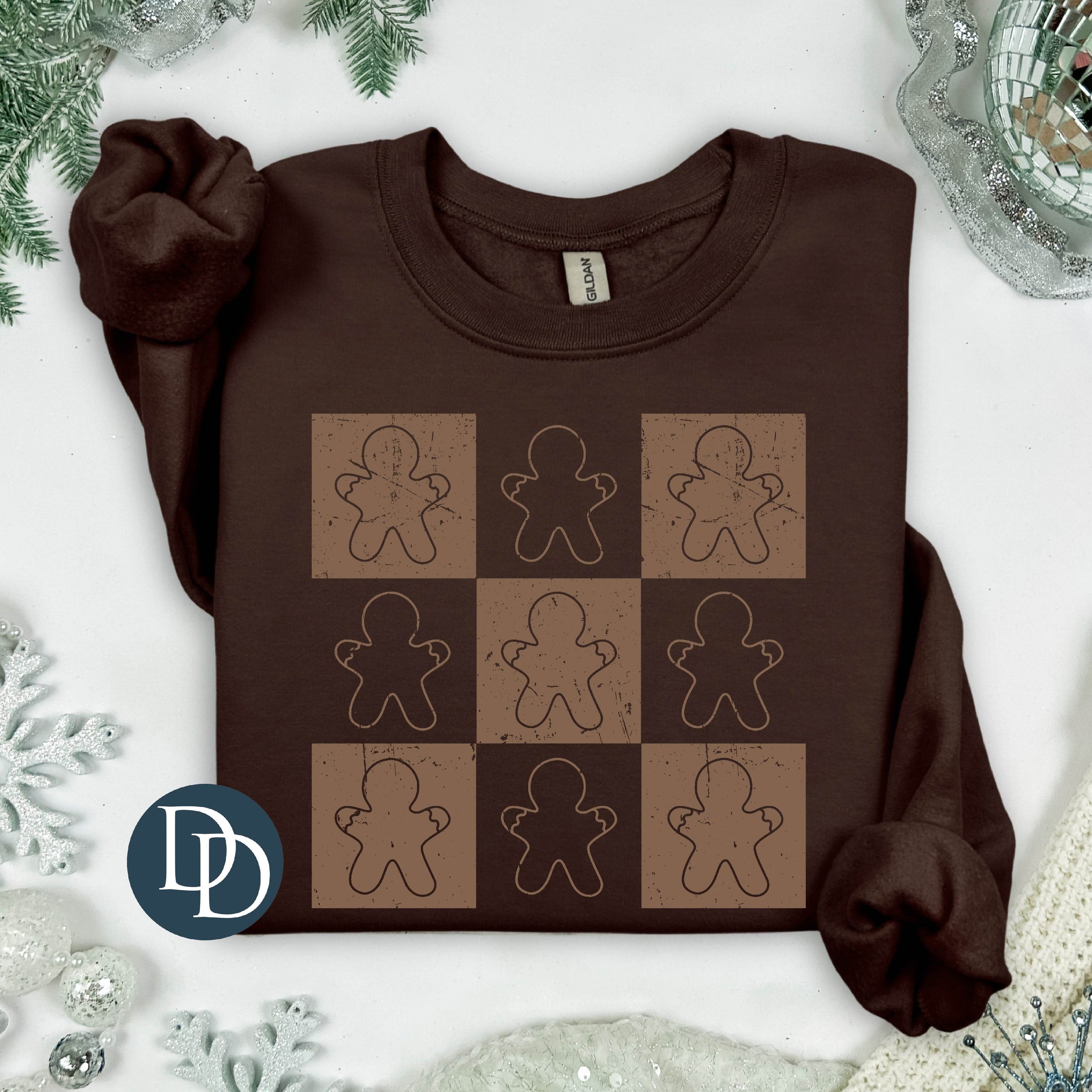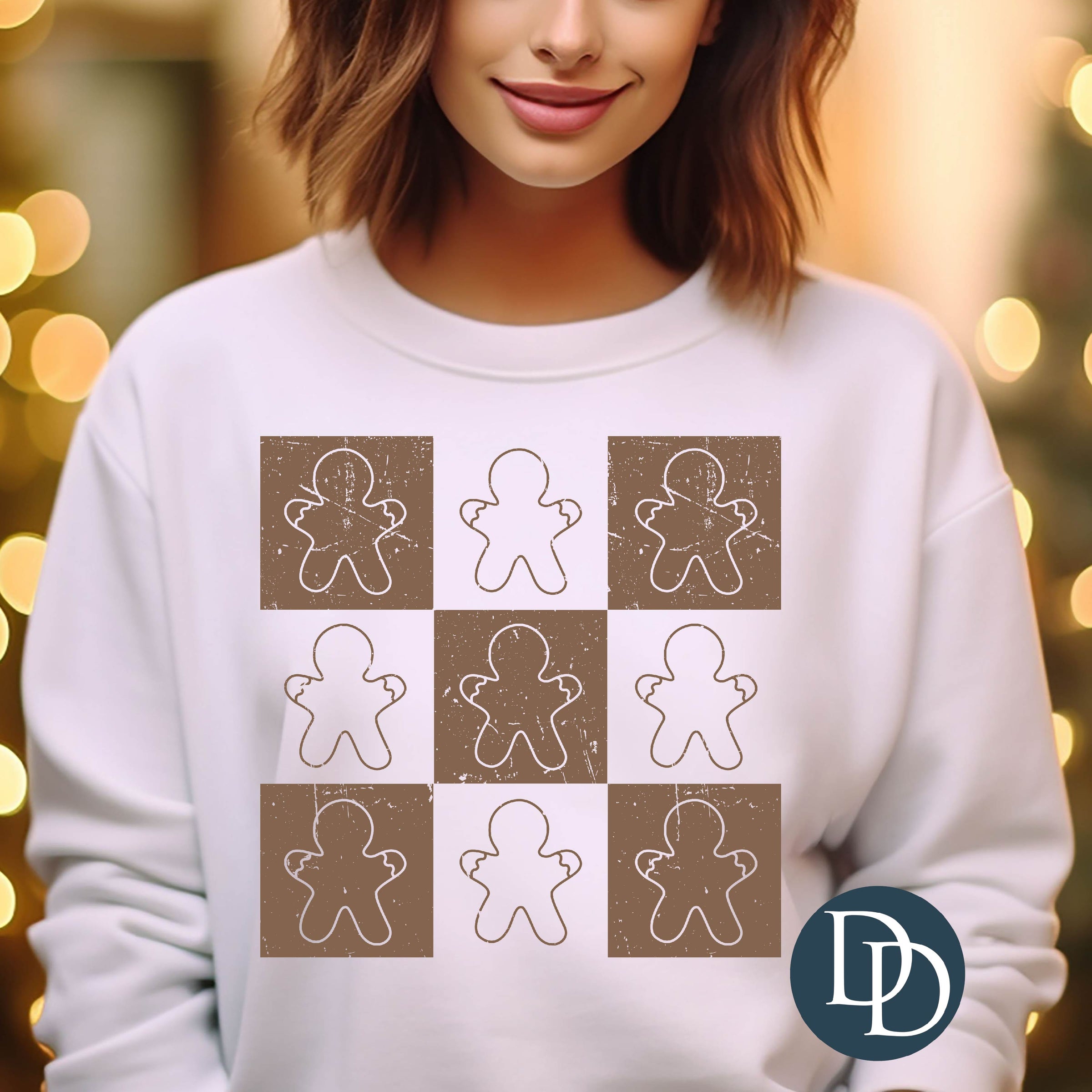 Checkered Gingerbread Man (Doe Brown Ink) *Screen Print Transfer*