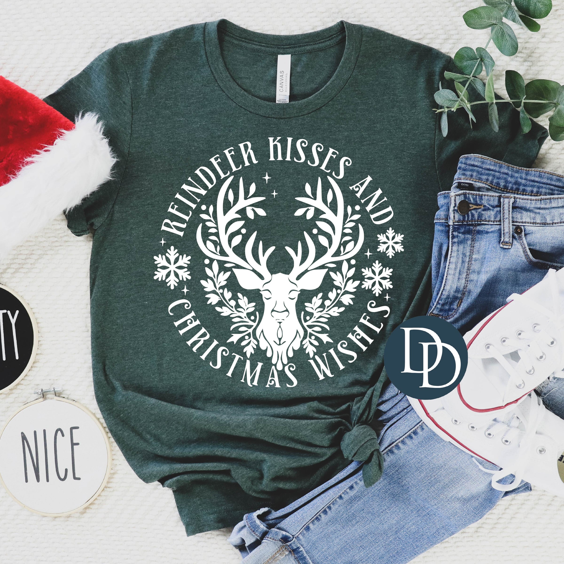 Reindeer Kisses And Christmas Wishes (White Ink) *Screen Print Transfer*