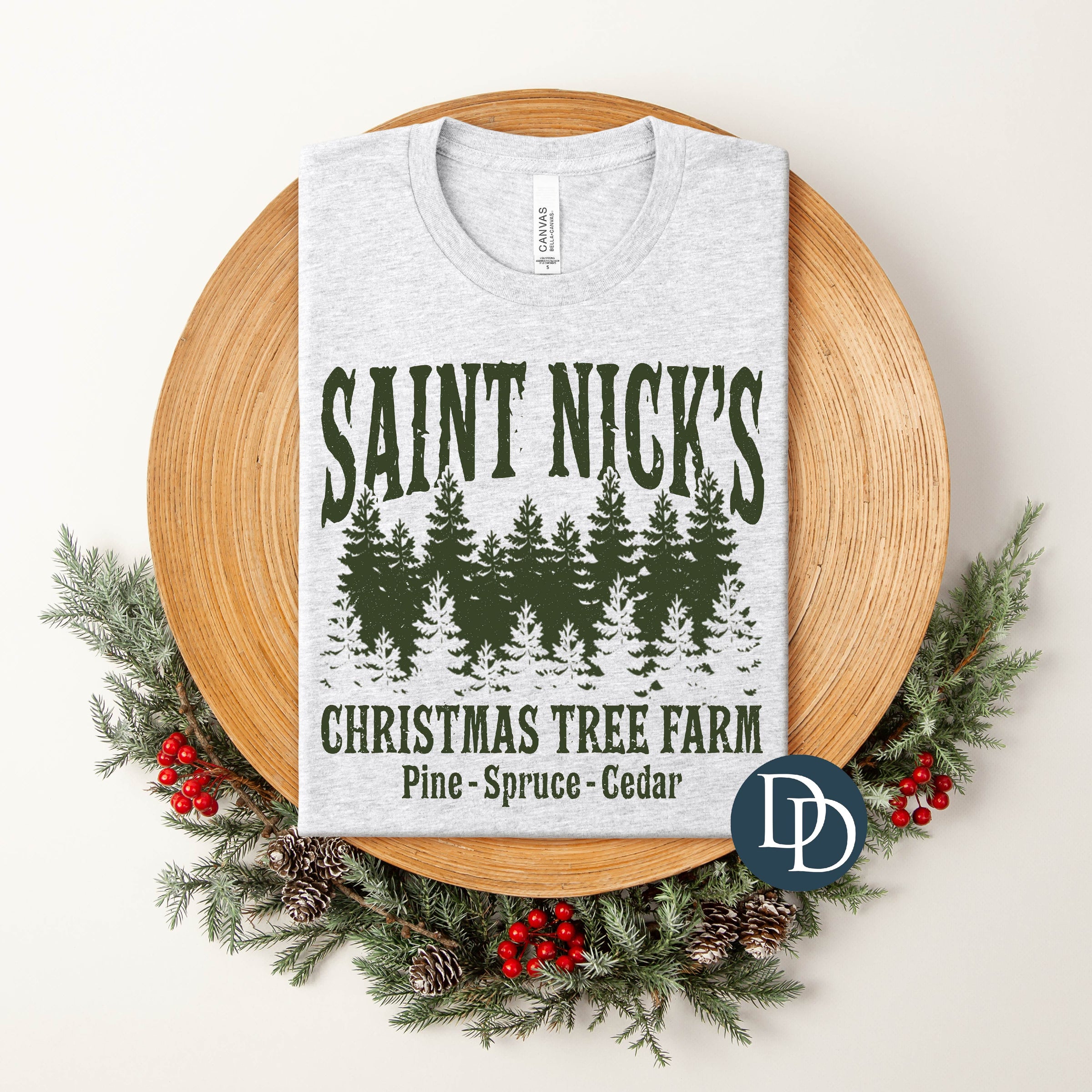 Saint Nick's Christmas Tree Farm (Hunter Green Ink) *Screen Print Transfer*