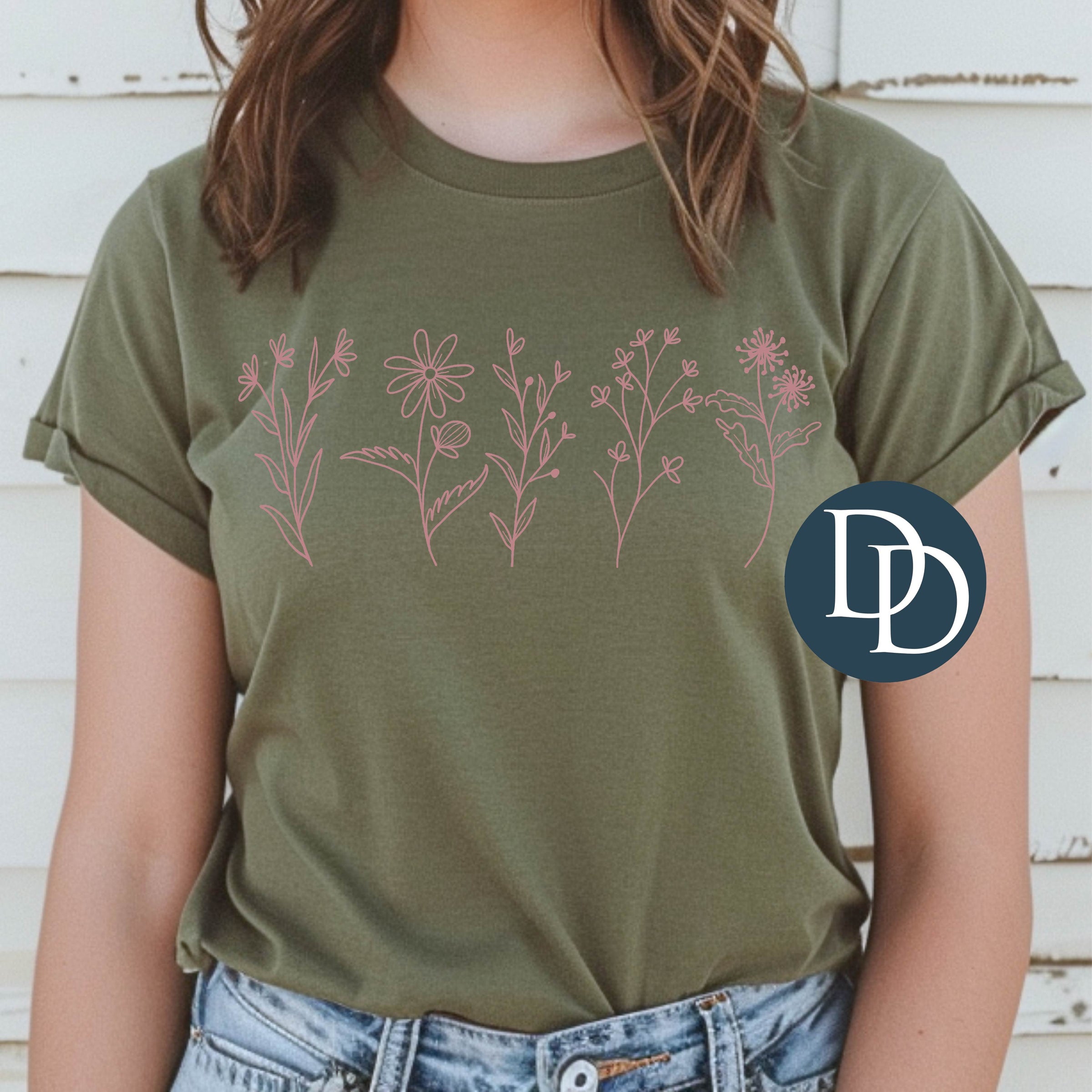Boho Wildflowers (Dusty Rose Ink) *Screen Print Transfer*