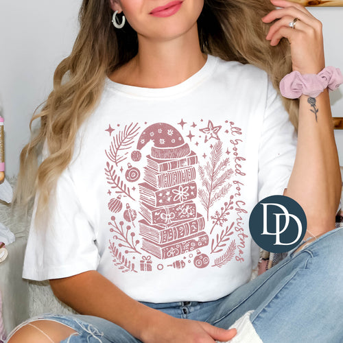 All Booked For Christmas Bookstack (Dusty Rose Ink) *Screen Print Transfer*