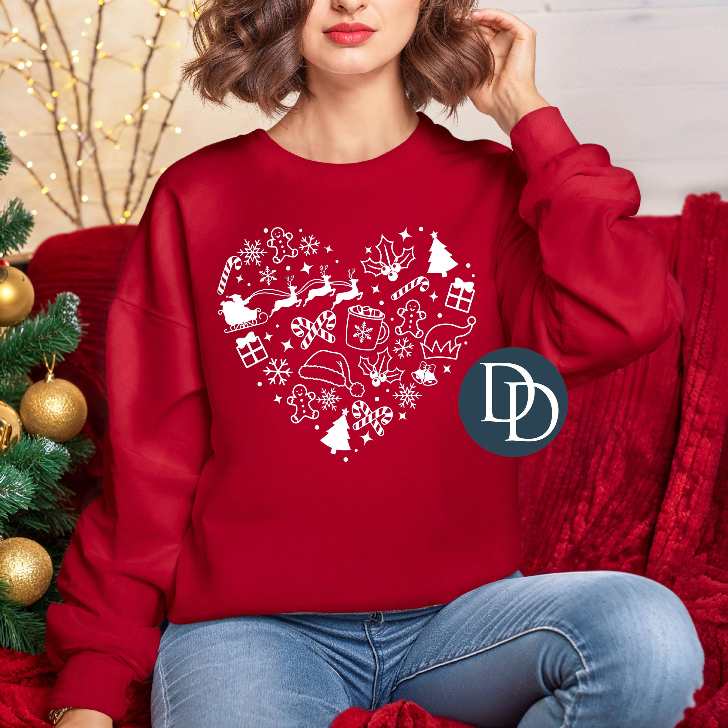 Christmas Icons Heart (White Ink) *Screen Print Transfer*
