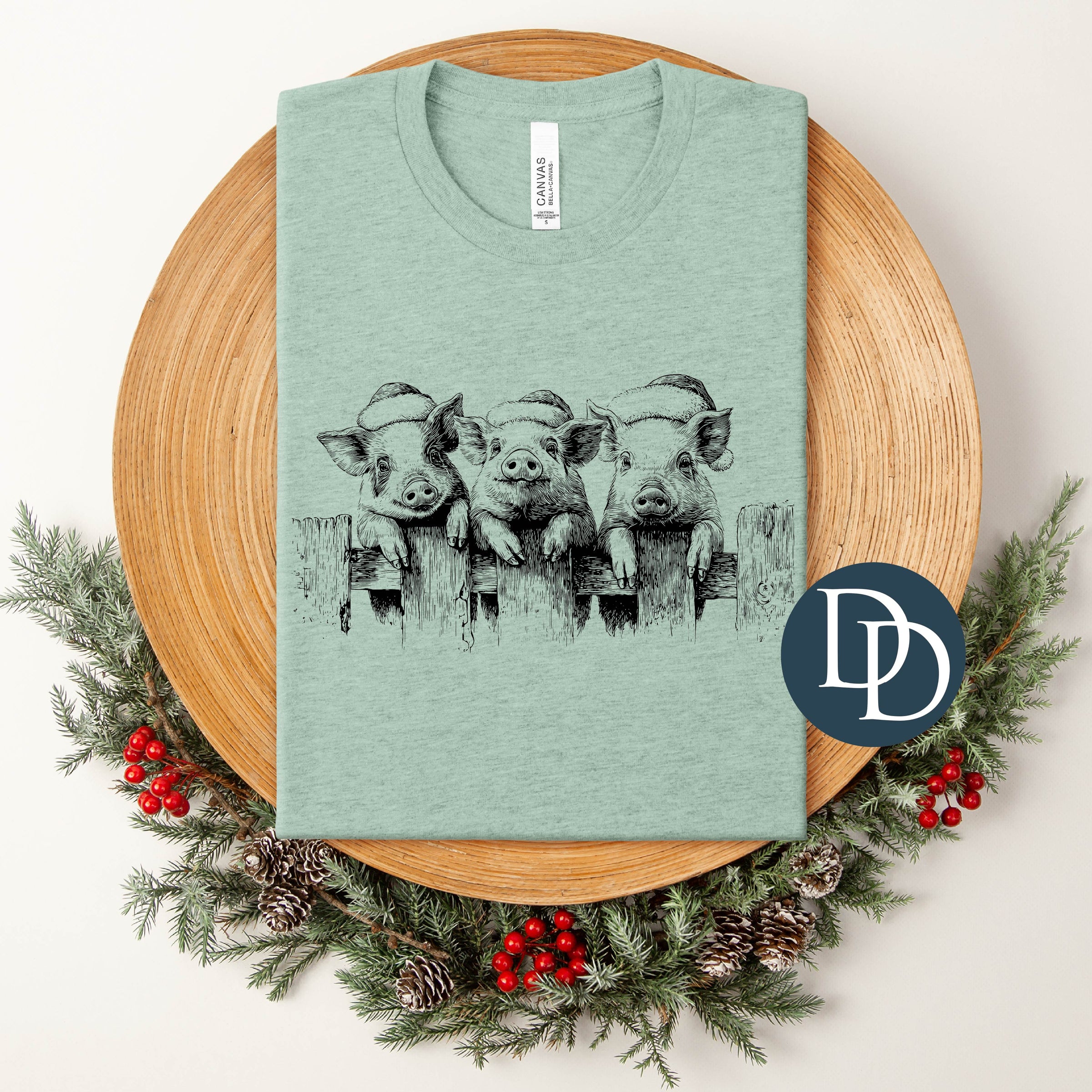 Christmas Pig Trio (Black Ink) *Screen Print Transfer*