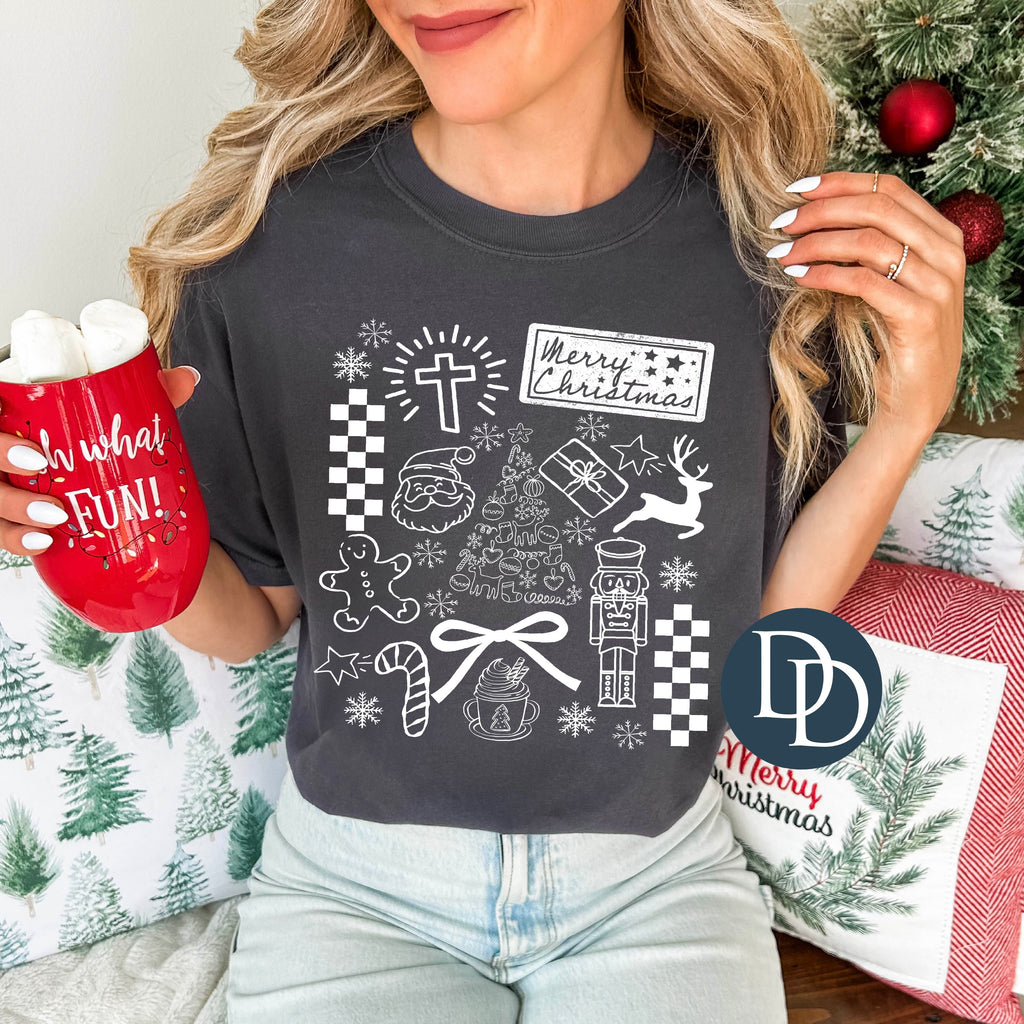 Merry Christmas Collage (White Ink) *Screen Print Transfer*