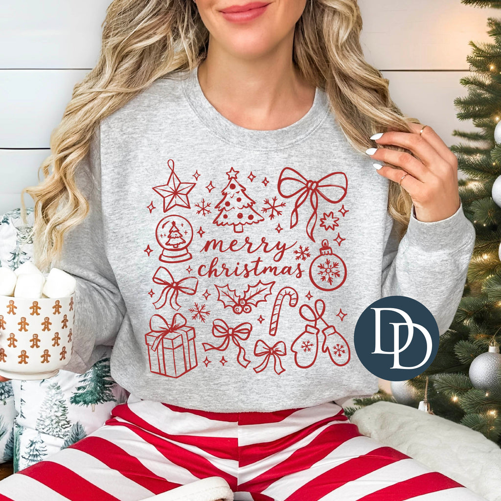 Merry Christmas Sketches Collage (Red Ink) *Screen Print Transfer*
