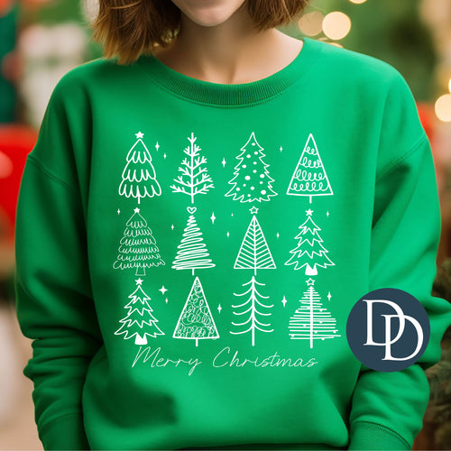 Merry Christmas Tree Variety (White Ink) *Screen Print Transfer*