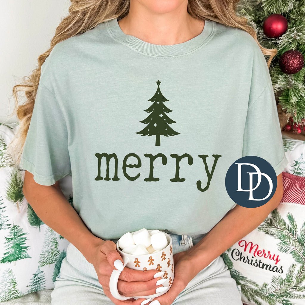 Merry And Bright Tree (Hunter Green Ink) *Screen Print Transfer*
