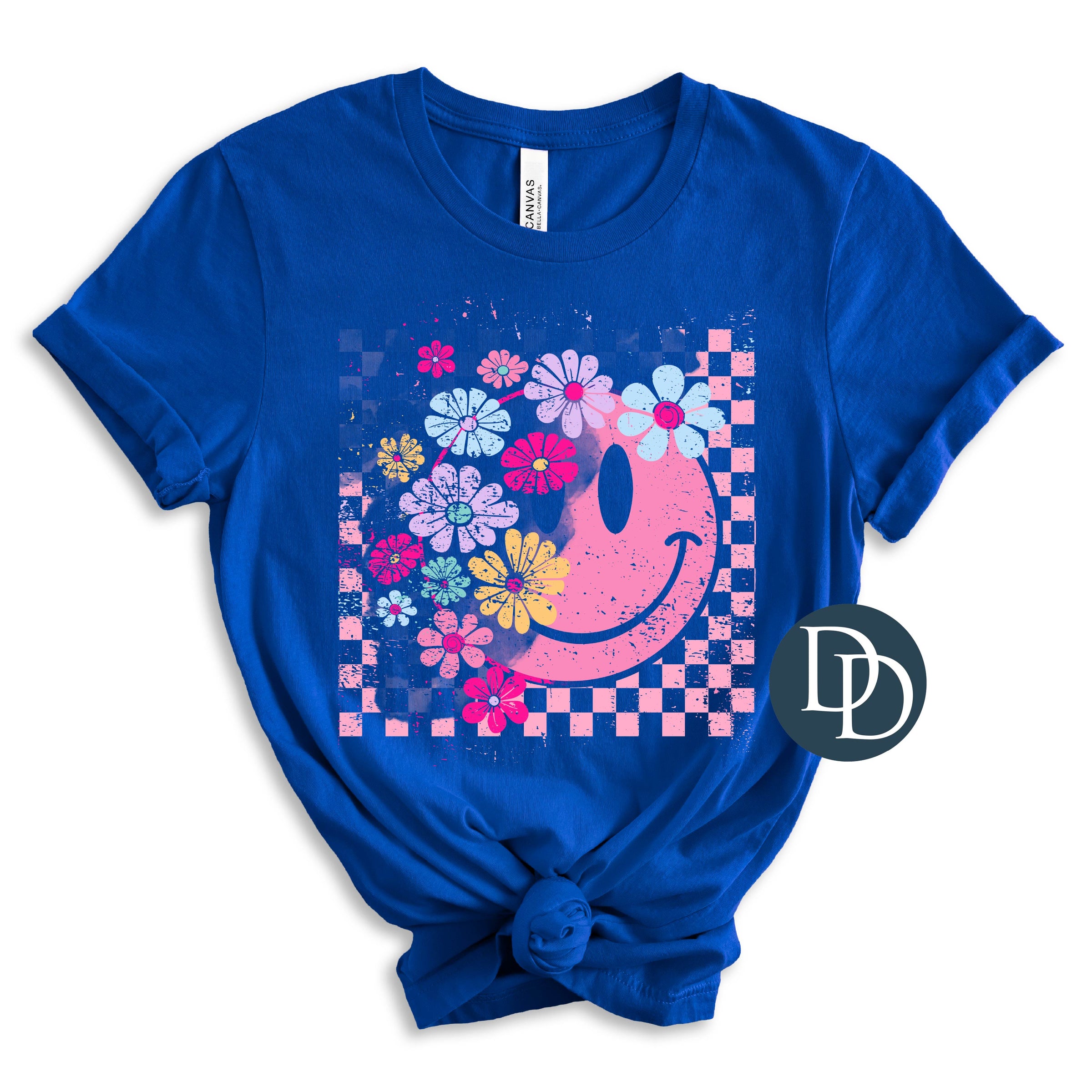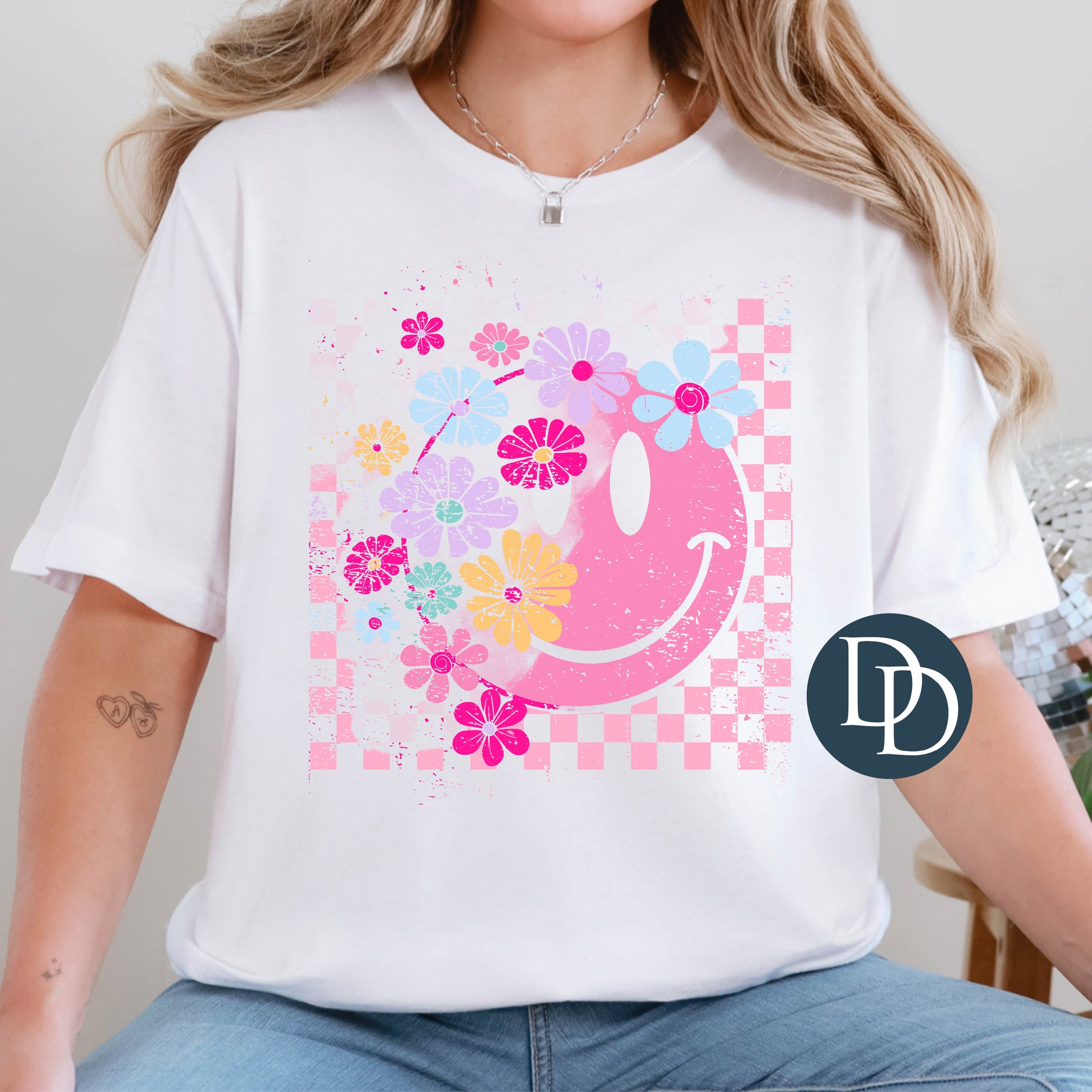 Grunge Checkered Flower Smile *DTF Transfer*