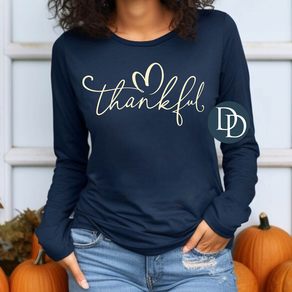 Thankful Script Heart (Cream Ink) - NOT RESTOCKING - *Screen Print Transfer*
