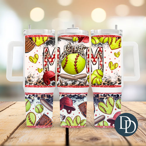 Softball Mom Leopard Red Faux Glitter *UV DTF 40oz Tumbler Wrap*