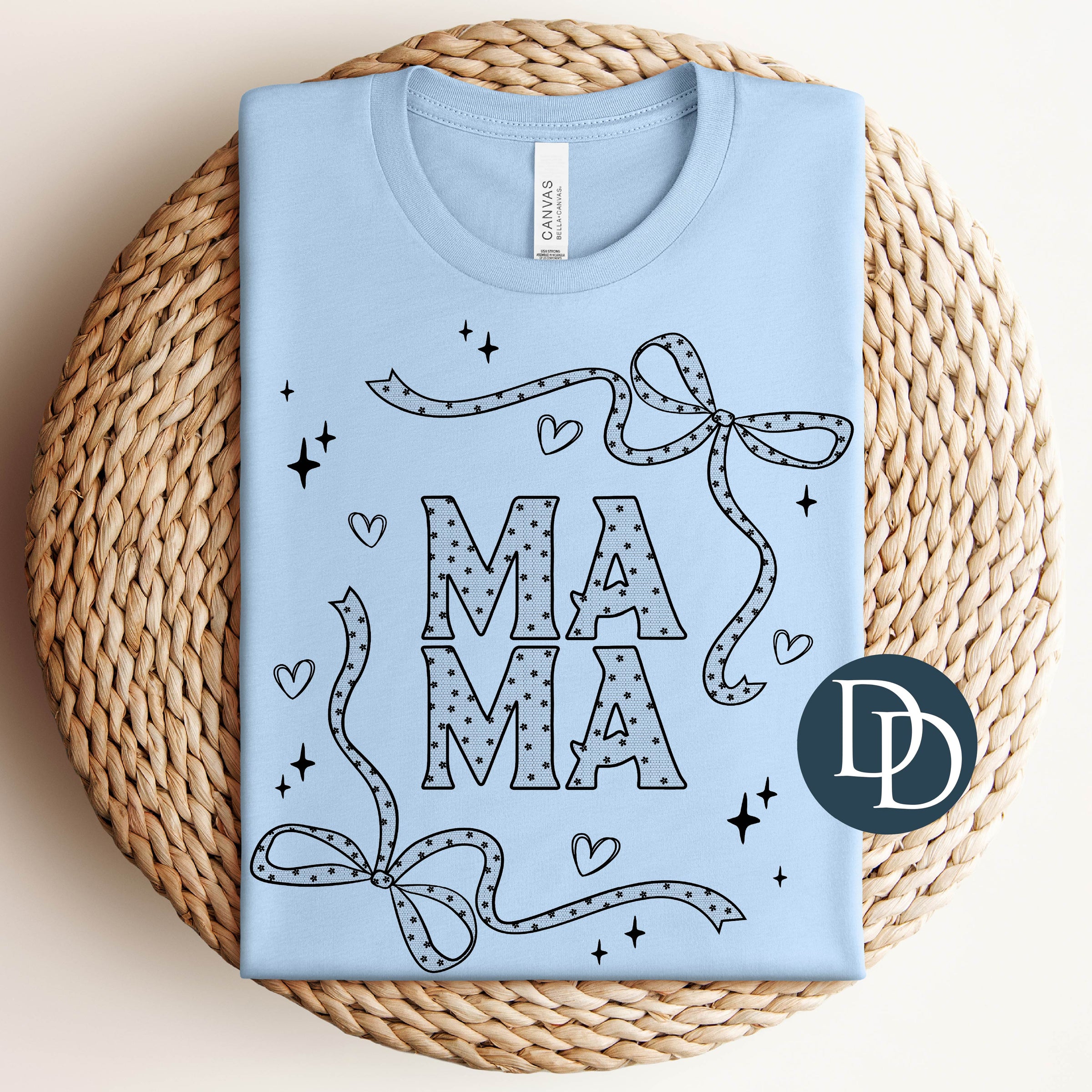 Mama Black Bow Hearts Faux Lace (Black Ink) *Screen Print Transfer*