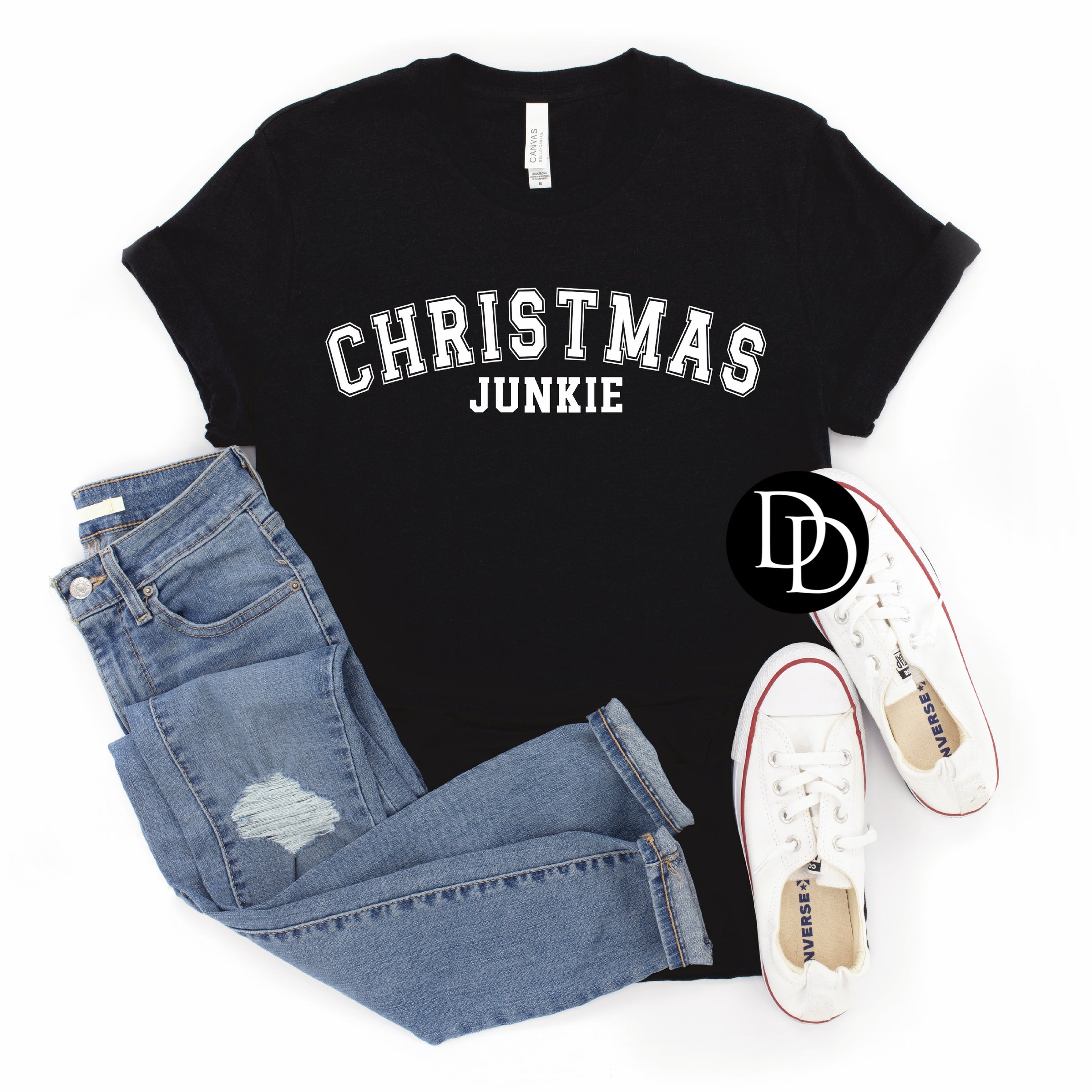 Oversized Christmas Junkie (White Ink) *Screen Print Transfer*