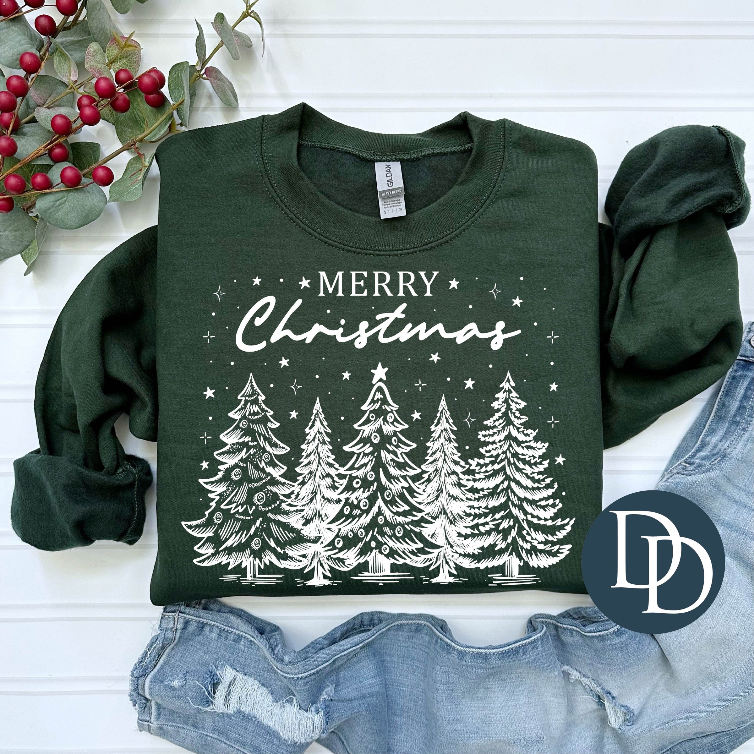 Merry Christmas Starry Trees (White Ink) *Screen Print Transfer*