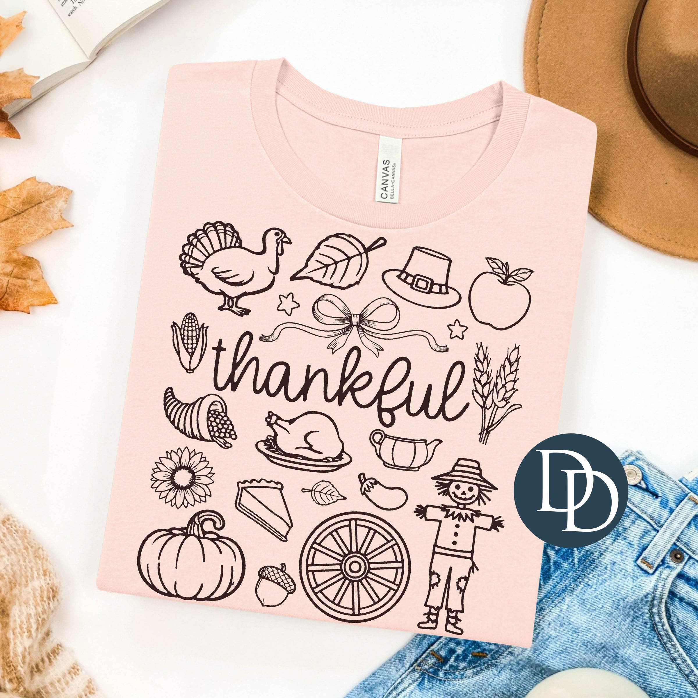 Thankful Doodle Collage (Dark Brown Ink) *Screen Print Transfer*