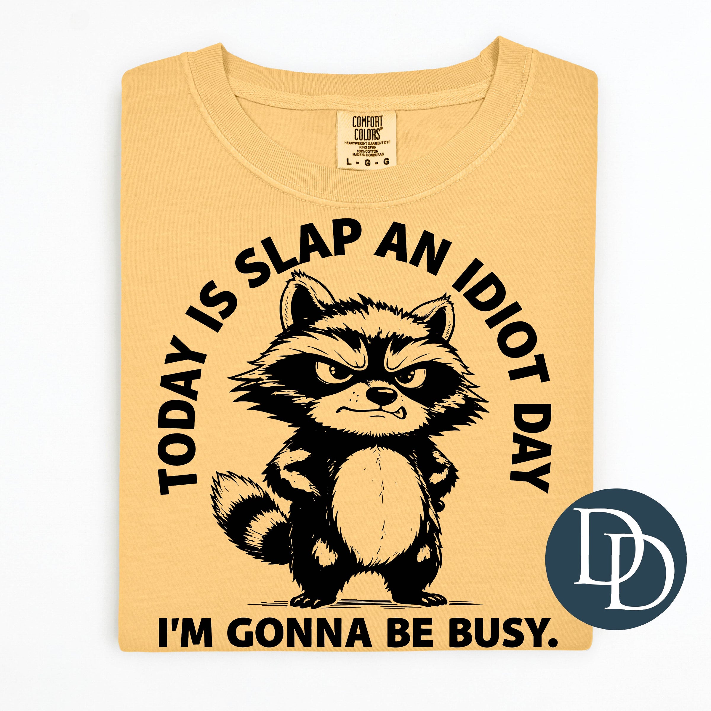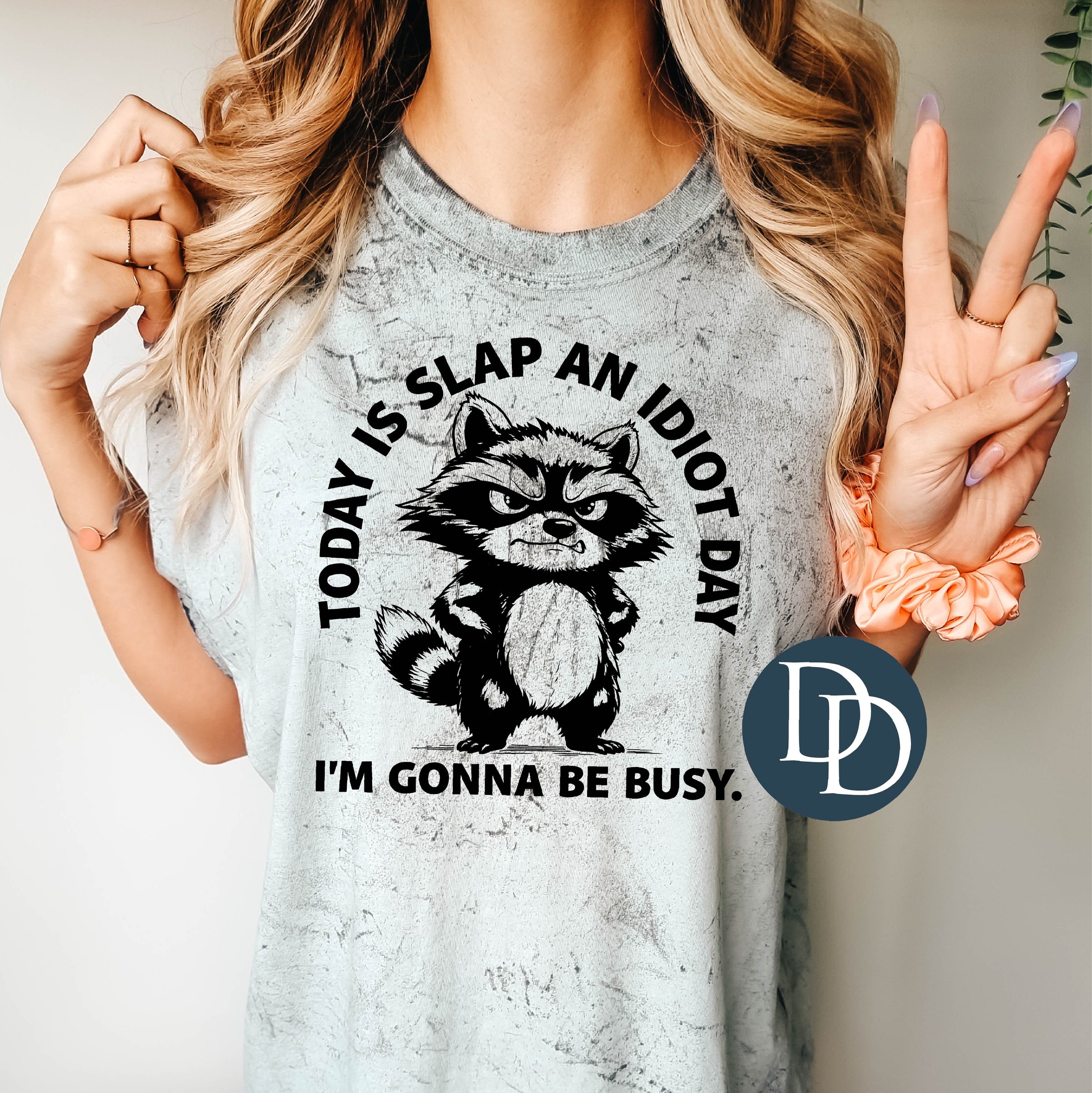 Today Is Slap An Idiot Day Raccoon (Black Ink) *Screen Print Transfer*