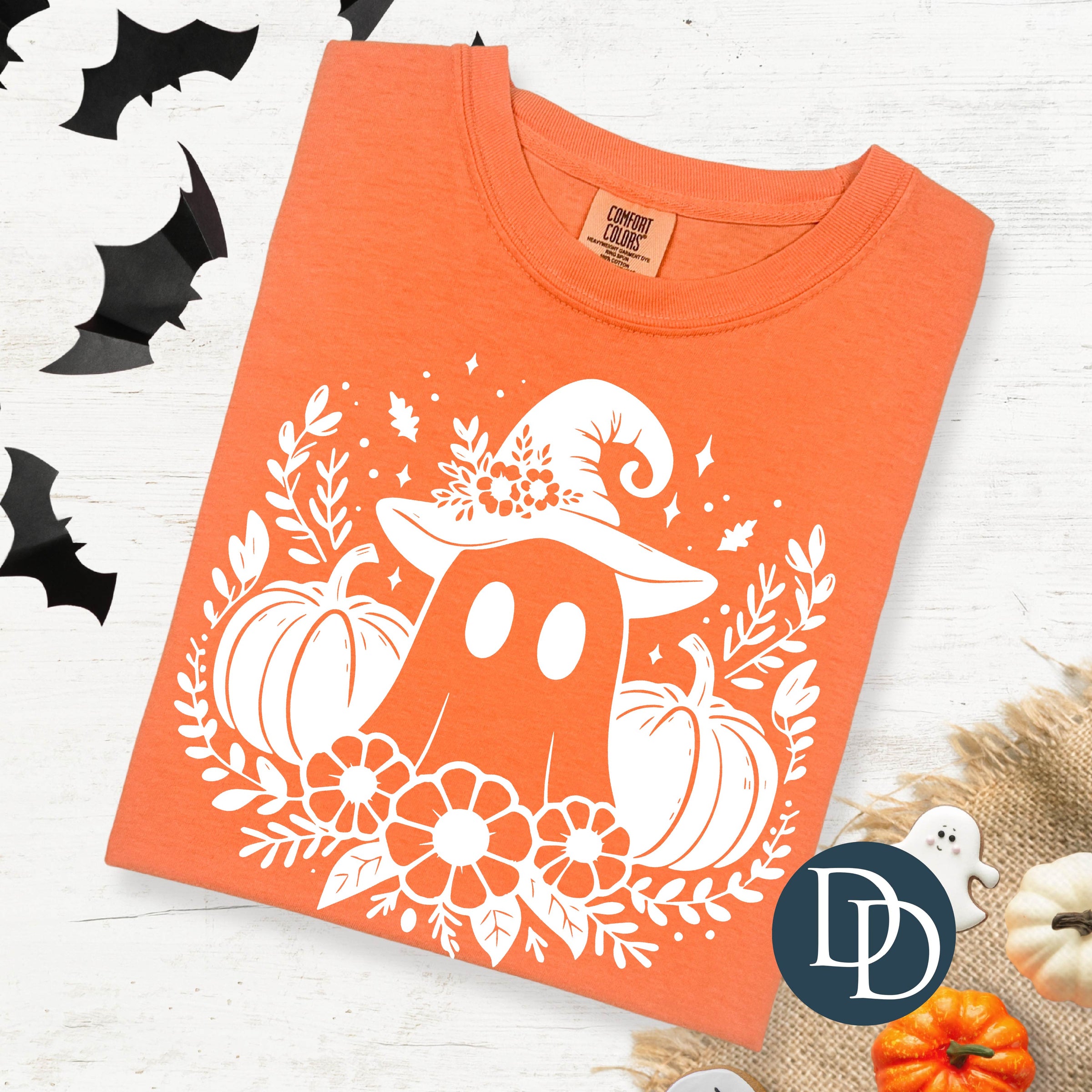 Witch Hat Ghost Florals (White Ink) *Screen Print Transfer*