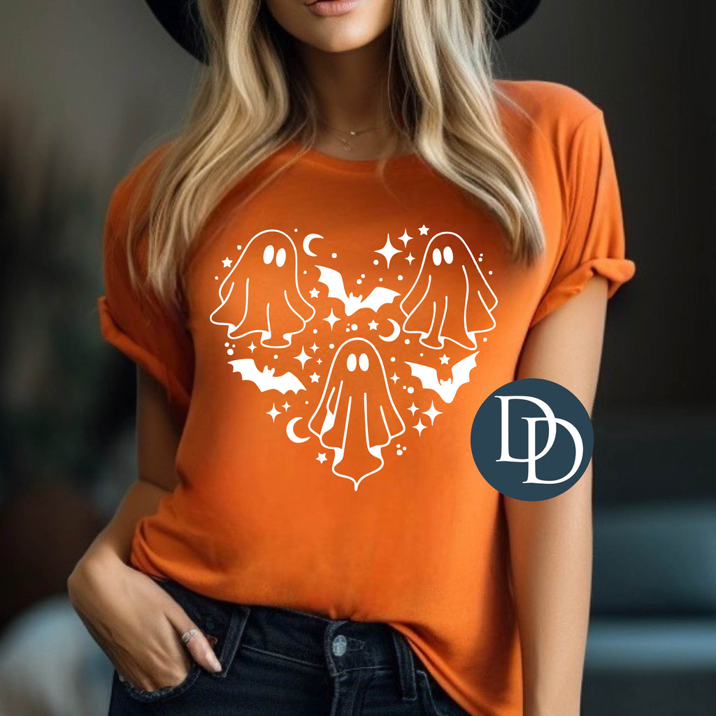 Ghosts And Bats Heart (White Ink) *Screen Print Transfer*