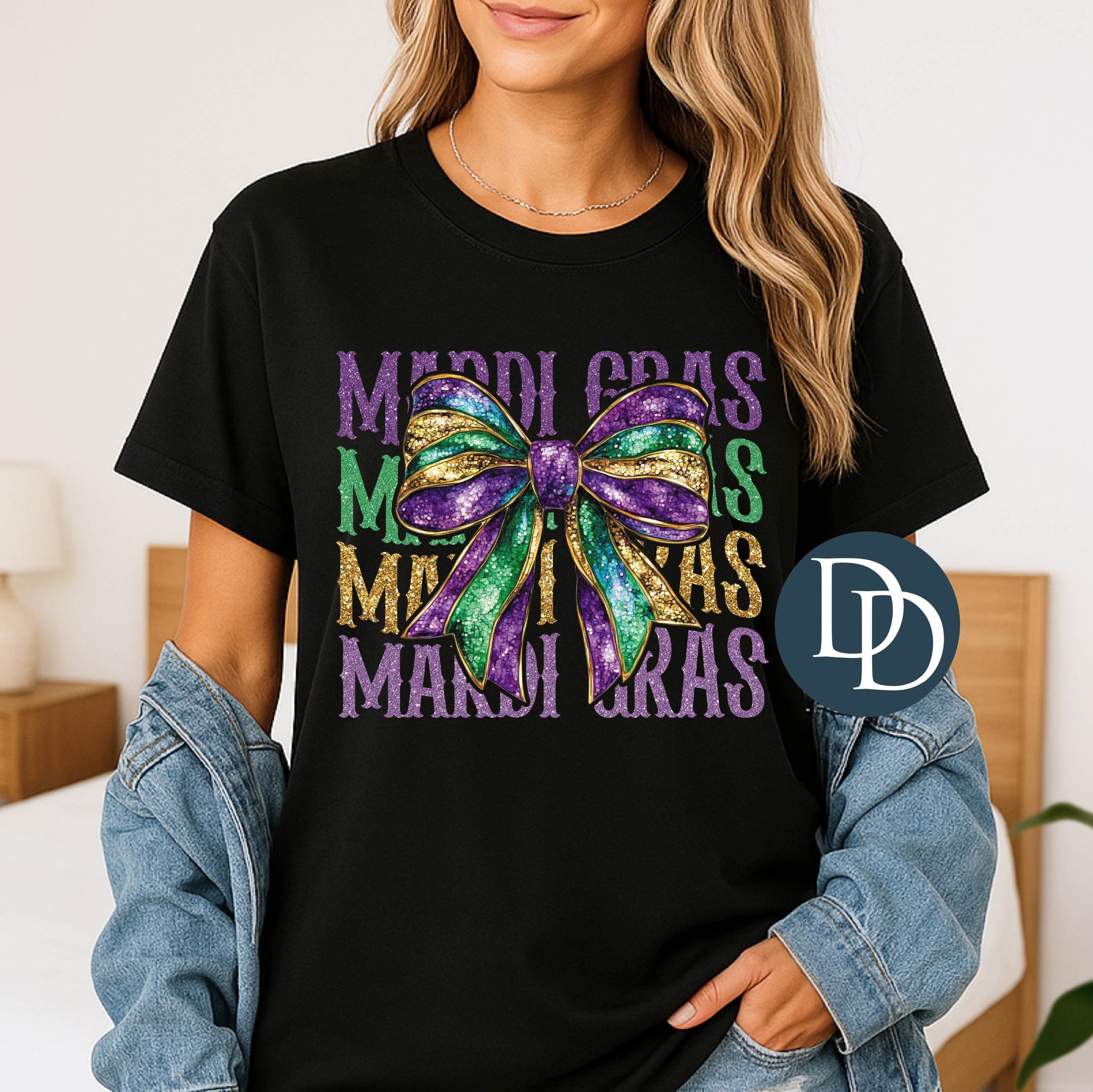 Mardi Gras Bow Stack Faux Glitter *DTF Transfer*