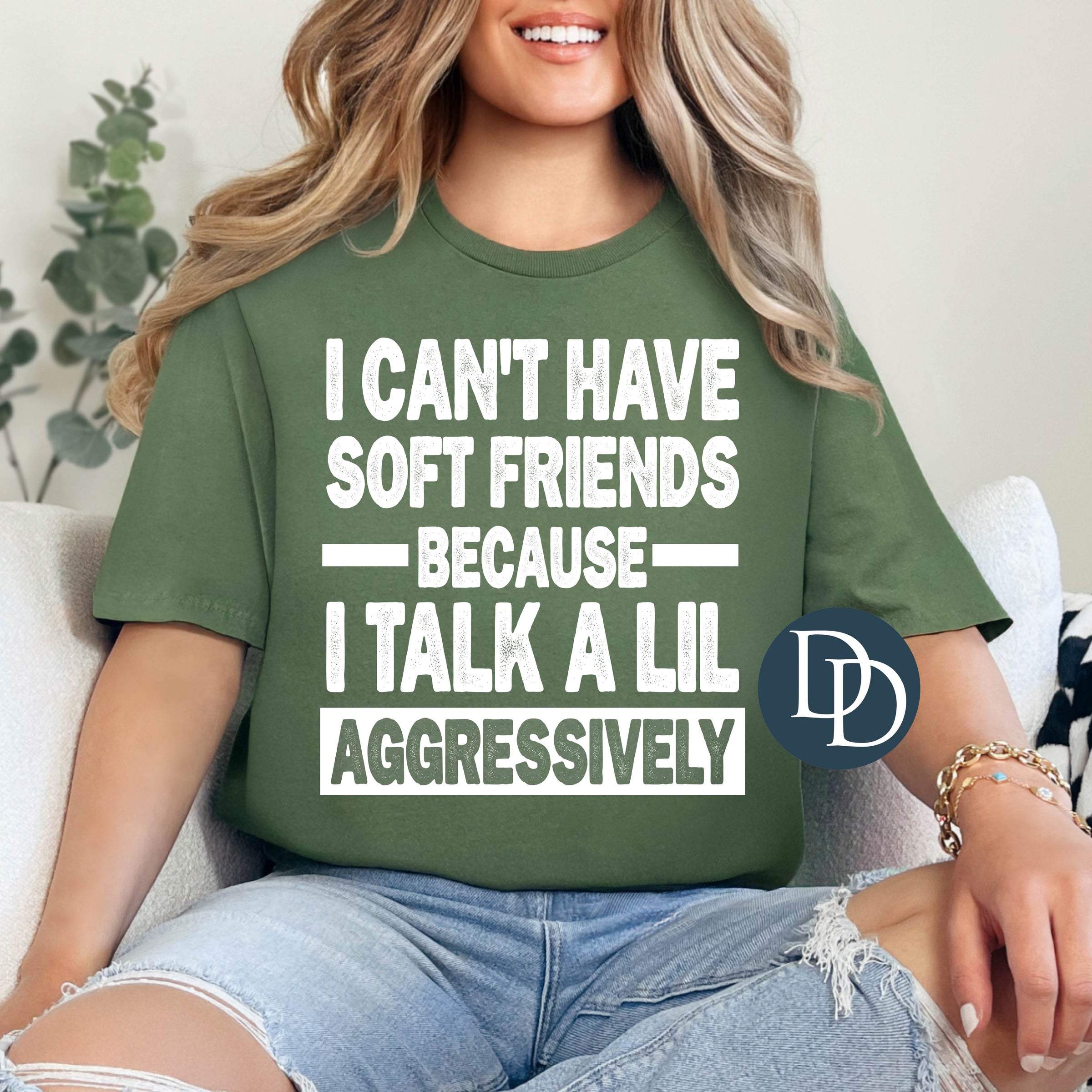 I Can't Have Soft Friends Aggressive (White Ink) *Screen Print Transfer*