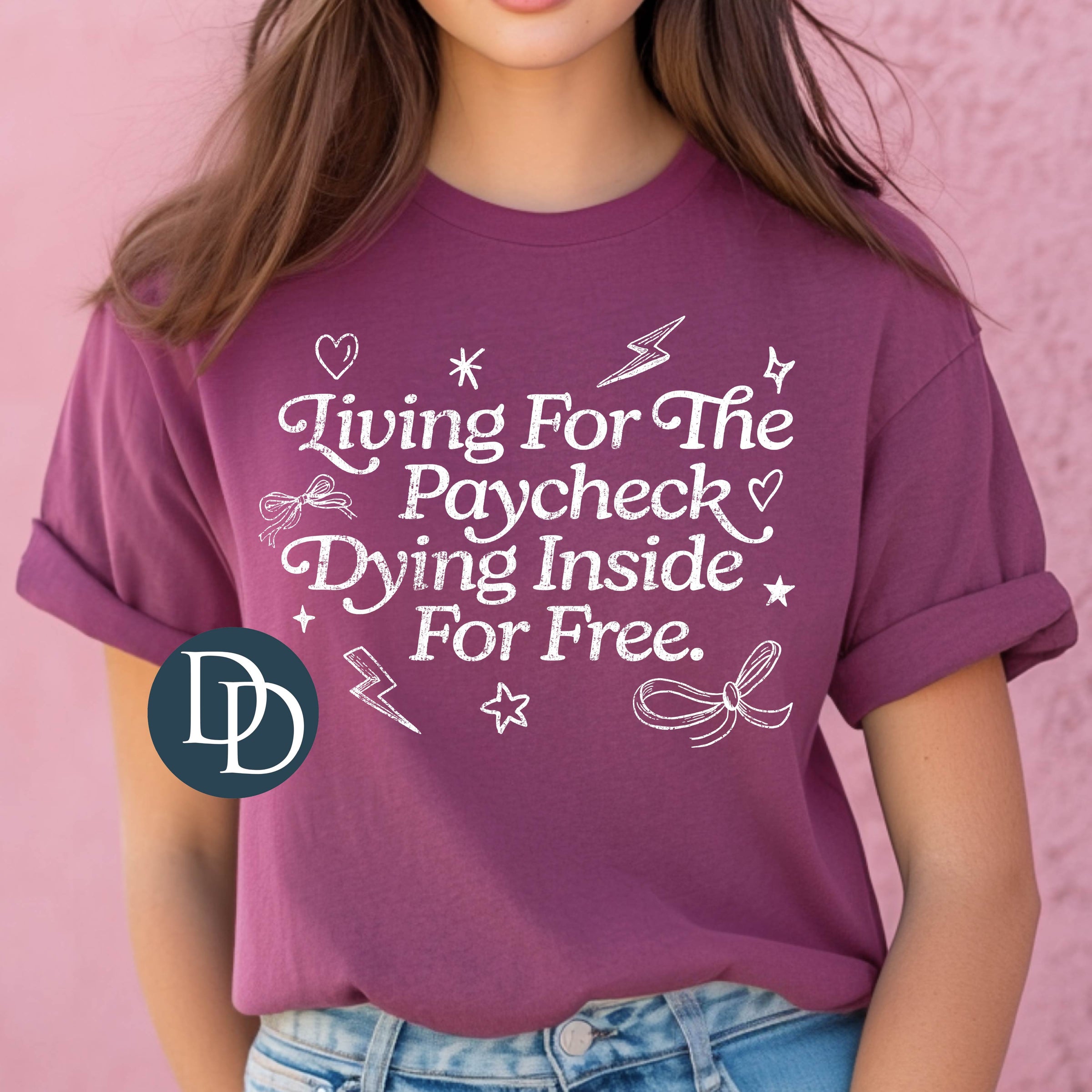 Living For the Paycheck (White Ink) *Screen Print Transfer*