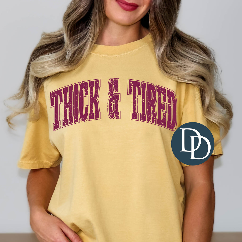 OVERSIZED Thick And Tired Distressed (Burgundy Ink) *Screen Print Transfer*