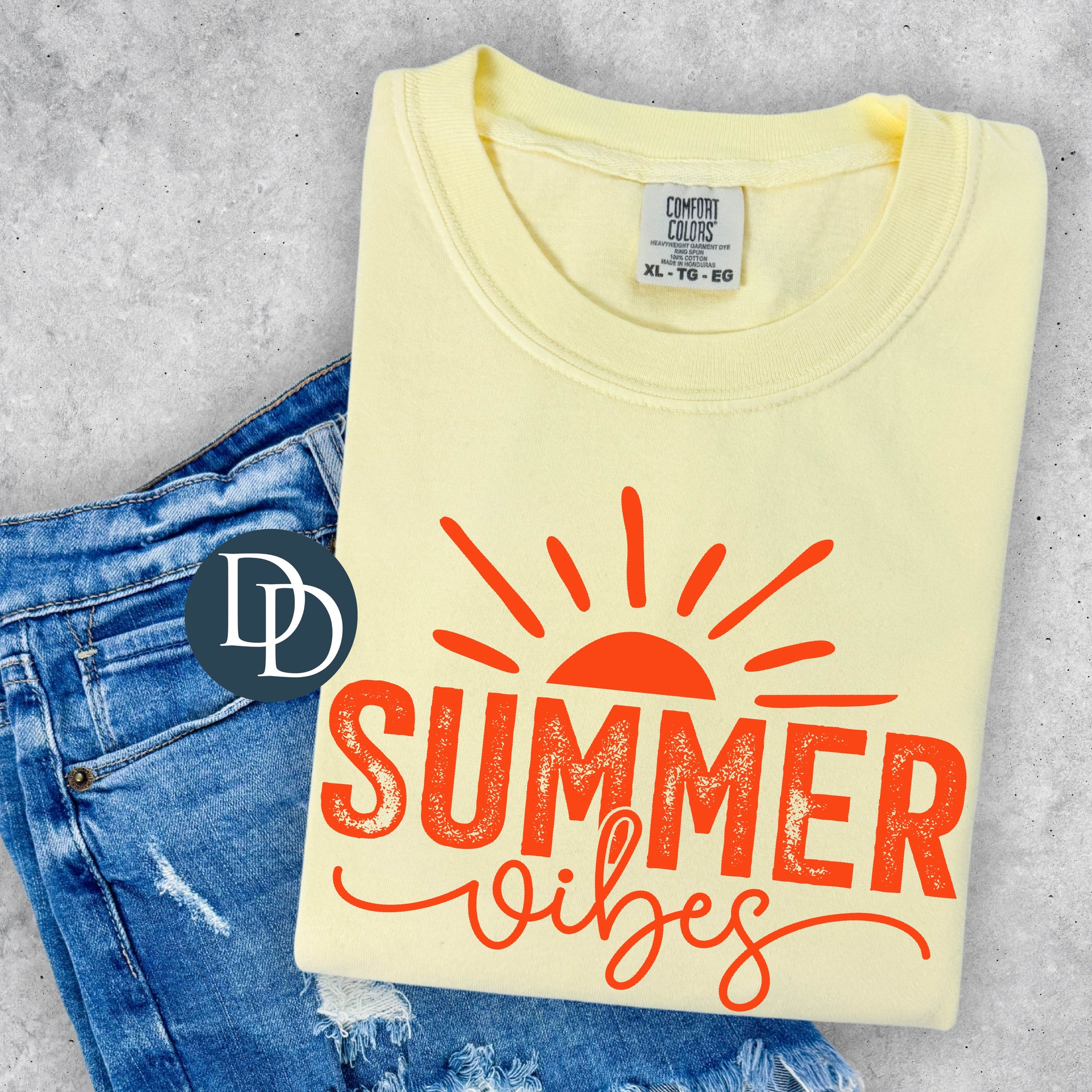 Summer Vibes Distressed Horizon Sun with Hat Print (Orange Ink) *Screen Print Transfer*
