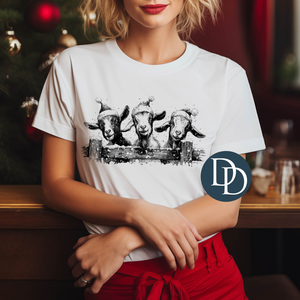 Christmas Goat Trio (Black Ink) *Screen Print Transfer*
