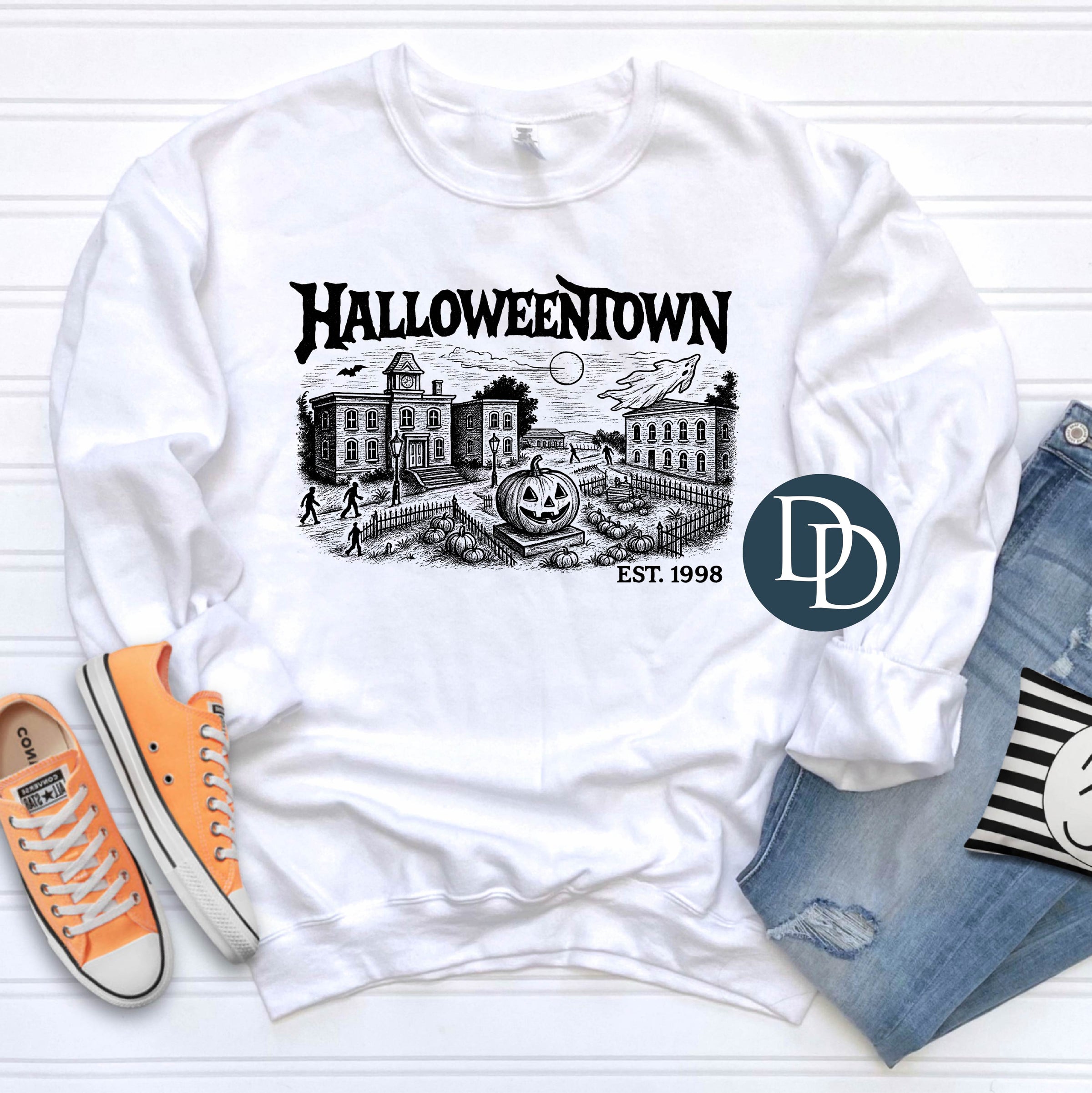 Halloween City Scene (Black Ink) - NOT RESTOCKING - *Screen Print Transfer*