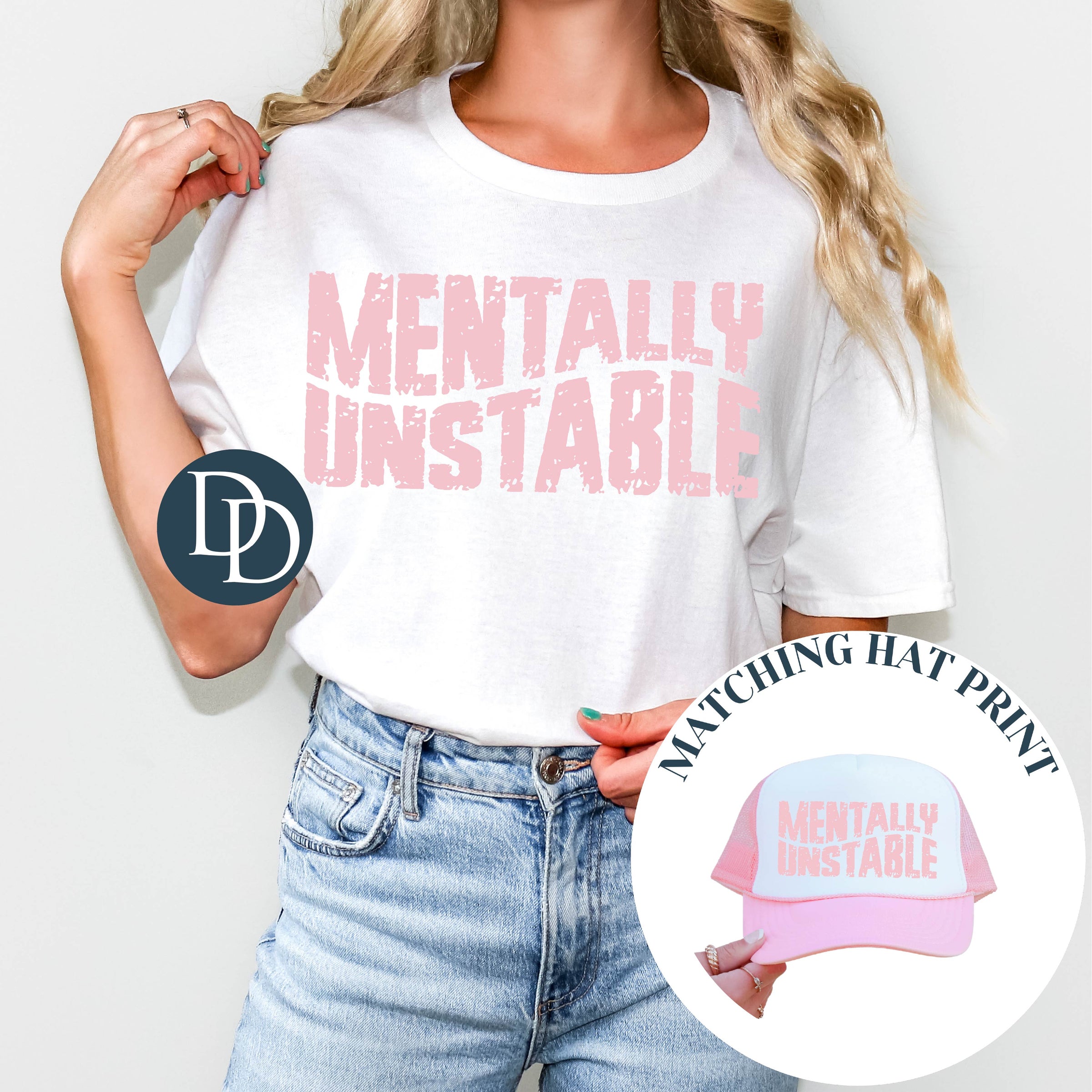 OVERSIZED Mentally Unstable Wavy with Hat Print (Baby Pink Ink) - NOT RESTOCKING - *Screen Print Transfer*